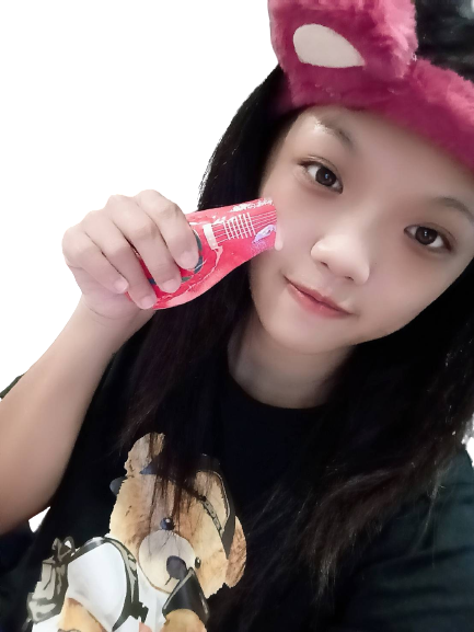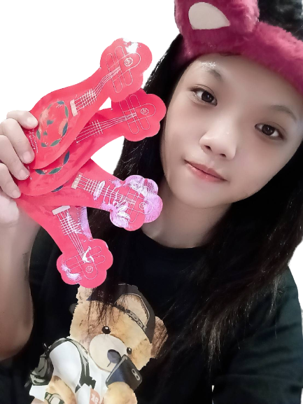 臉部清潔過後拿出一包My young time玫妍堂 煥顏白玉撫紋亮白凍膜,